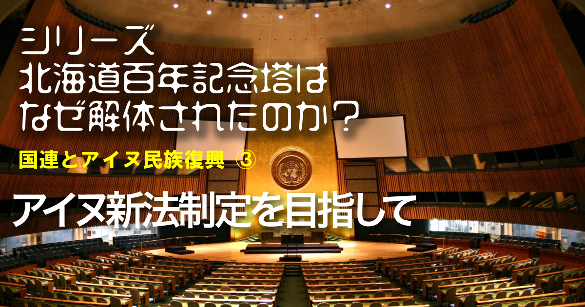 ILO169条約を制定した世界的な先住民族の民族意識の高まりを受け、平成3(1991)年、国連は1993年を「世界の先住民の国際年」(国際先住民年)にすることを決定。さらにより広範な先住民族条約をつくろうという機運も高まる。ウタリ協会はこれをアイヌ新法制定の好機にしようと陳情活動を活発化させた。