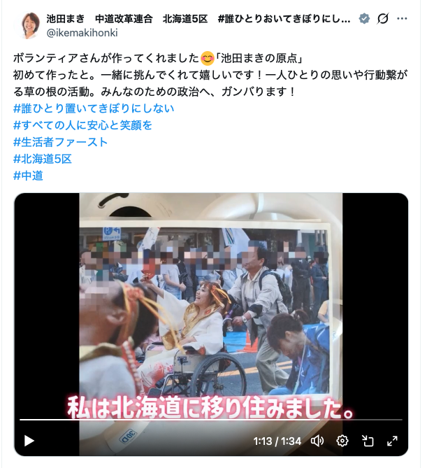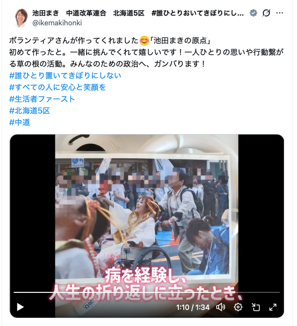 池田氏は令和8年1月30日の公式Xで公開した「ボランティアさんがつくってくれました『池田まき』」の原点というショートムービーでも病が北海道移住のきっかけだったと表明している。